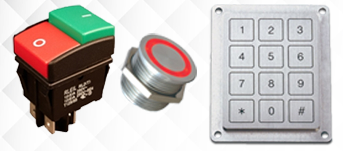 Amplia gama de componentes de máxima calidad cómo pulsadores, micro-contactos, interruptores, joysticks, clavijas, teclados y pulsadores piezoeléctricos, optoelectrónica, control de acceso, etc…